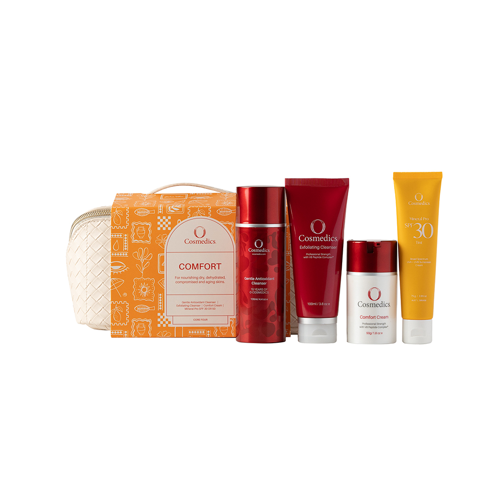 Celebrate skin health, youth and ultimate confidence in just four simple steps: Cleanse, Exfoliate, Hydrate and Protect with Gentle Antioxidant Cleanser (100ml), Exfoliating Cleanser, your choice of Hydrator and receive a Mineral Pro SPF 30 FREE.